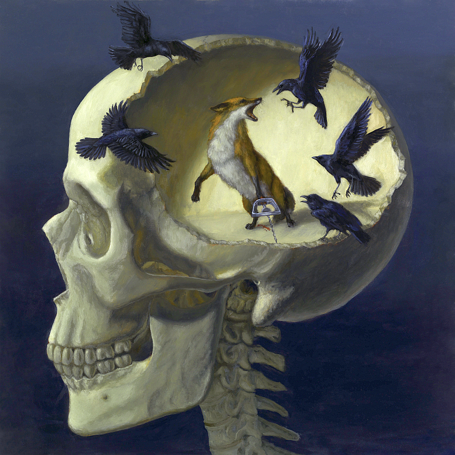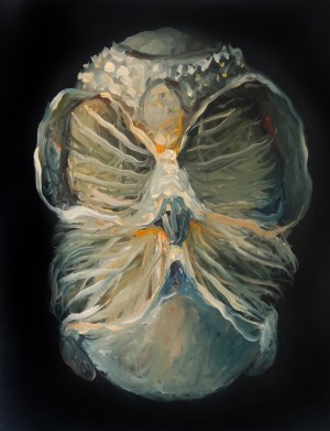 San Francisco-based artist Sandra Yagi paints fantastic incongruities that jolt the consciousness. She is a diligent student of science and nature fused with classical aesthetics. Yagi’s two astonishing “cutaway skull†paintings in the show explore myth and symbolism associated with “our basic human drives and the thin veneer of humanity overlaying our animal nature.â€