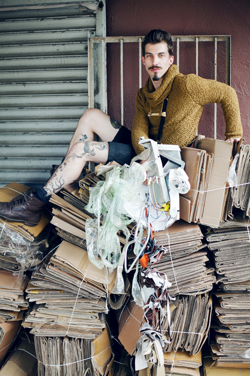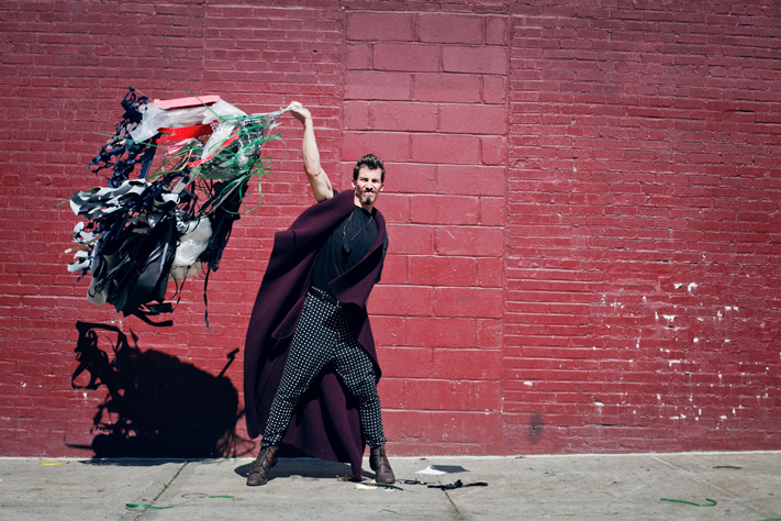 Describe any elaborate activities, rituals you may have done while seeking inspiration. Weird question. I don’ think I perform elaborate rituals to seek inspiration, I think the rituals come from being inspired. I used to walk about 20 blocks of Brooklyn bordering the Navy Yard 5-7 nights a week in search of some sort of discarded material that I could bend, float, drape, pinch, break or paint with and it eventually became the strangest thing I did as I would get waist-deep in a dumpster filled with human trash (the majority of which is half-eaten food I soon found out) fiendishly throwing materials to collect. The few individuals who got to witness it never really saw it in the jovial light I did. To them I was a dirty gutter kid with a fiery glow of excitement in his eyes and armfuls of trash.
